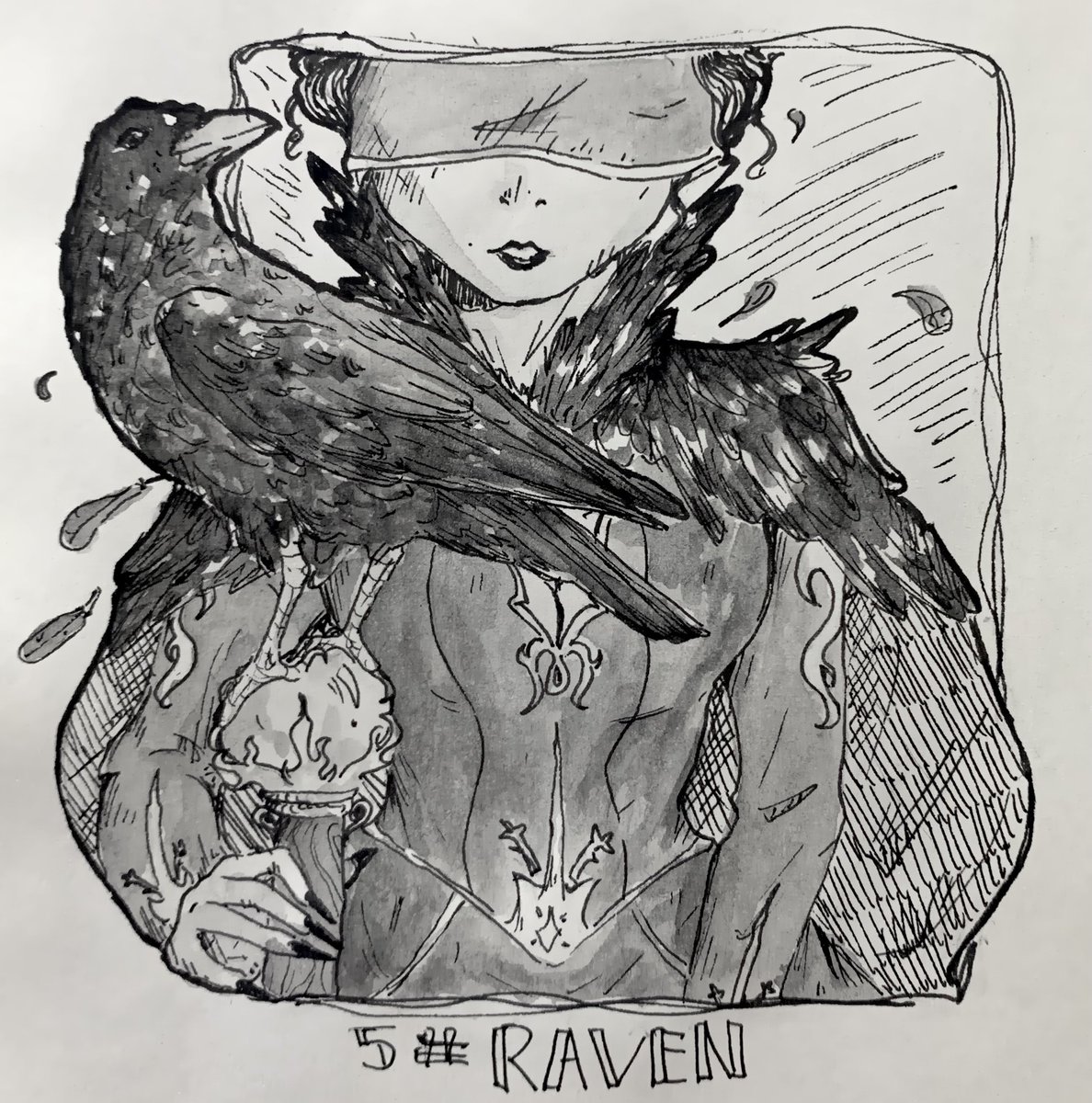 Day 5: Raven || I’m actually a big fan of this one, plus i got to draw birds, which I almost never do 😎 . . . . . . #art #artist #ArtistOnTwitter #traditionalart #sketchbook #ink #inktober #inktober2021 #inktober2021raven