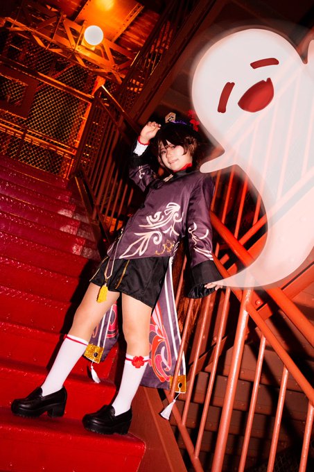 1 1 【#cosplay】#原神 胡桃・行秋@VepHUYOX5pe8BO4 ※本人許可は頂いてます カメラ撮影とオバケ描きました📸👻 23/02/21 21:32
