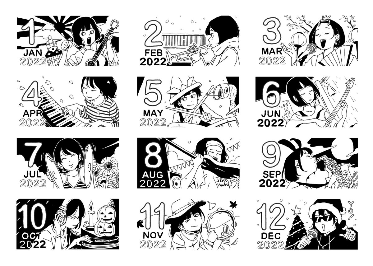 💿お知らせ💿 レコードショップJET SETさんの2022年版ノベルティカレンダーのイラストを描かせていただきました。 11/5(金)よりオンラインショップや京都店・下北沢店でお買い物すると手に入れることができるそうです。 詳しくはリンク先で❗️ぜひゲットして下さい~🎸 jetsetrecords.net/news/1728