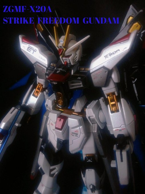 HGストライクフリーダムガンダム完成。 ホワイト箇所はパール、カラー箇所はキャンディ塗装にしたので超合金フィギュアの様に( ´-` )綺麗 #HGストライクフリーダムガンダム #ガンプラの画像貼るとRTされると聞いて