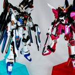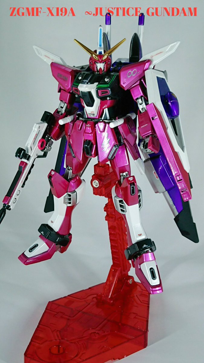 HGインフィニットジャスティスガンダム完成。 前に作ったHGストライクフリーダムガンダムとパシャリ😇映える2ショット #HGインフィニットジャスティスガンダム #キャンディ塗装 #ガンプラの画像貼るとRTされると聞いて