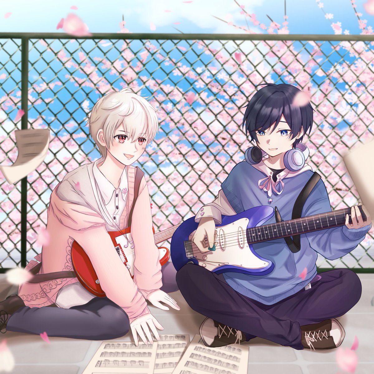 【合作】10数年前の僕たちへ ユニット復活、ライブ開催おめでとうございます🌸 #そらるの絵 #まふあーと 金魚ちゃん(@ kingyohanabi12 )と合作させていただきました!