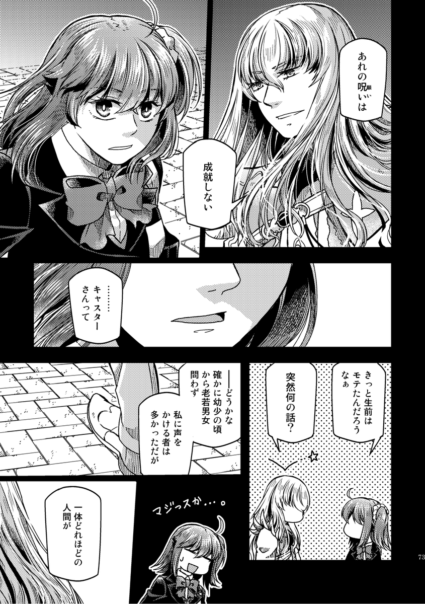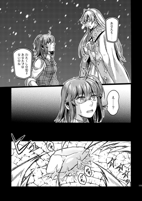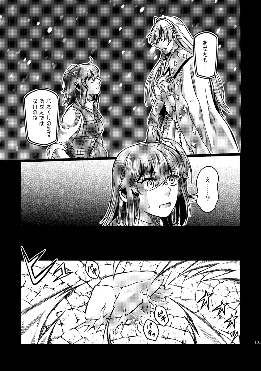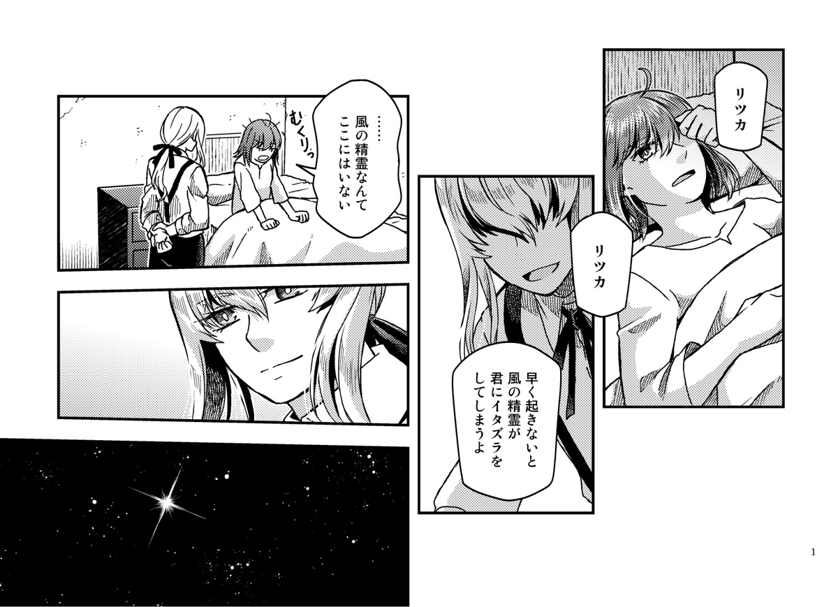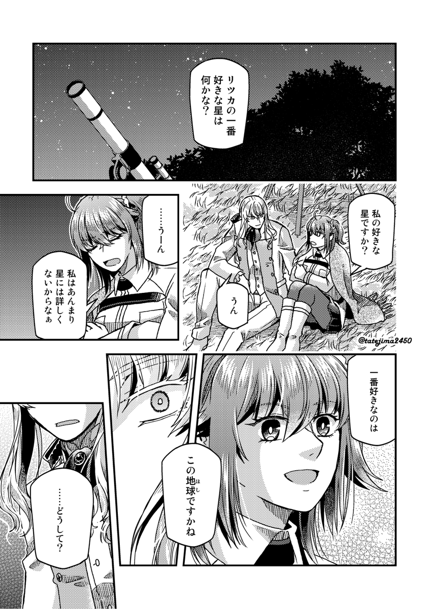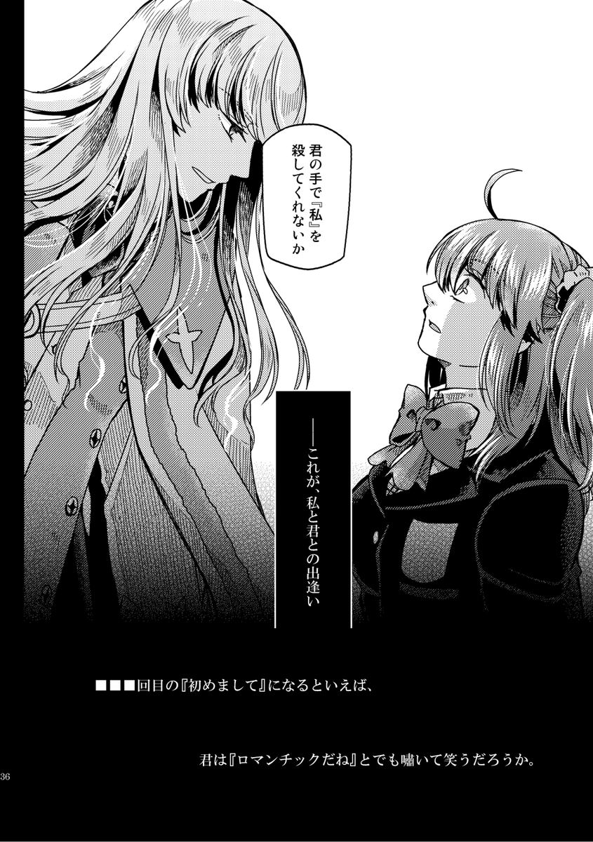 【12/18るーしこ】キリぐだ♀新刊サンプル1/3 『ハロー!シューティングスター』/変形サイズ表紙二色刷り/24P/¥400(イベント頒布価格) 少し不思議な感じのキリシュタリアとぐだ子のLB5後のお話。CPよりも+寄りです。 支部詳細→pixiv.net/artworks/10330… 委託通販(🐯)→ecs.toranoana.jp/joshi/ec/item/…