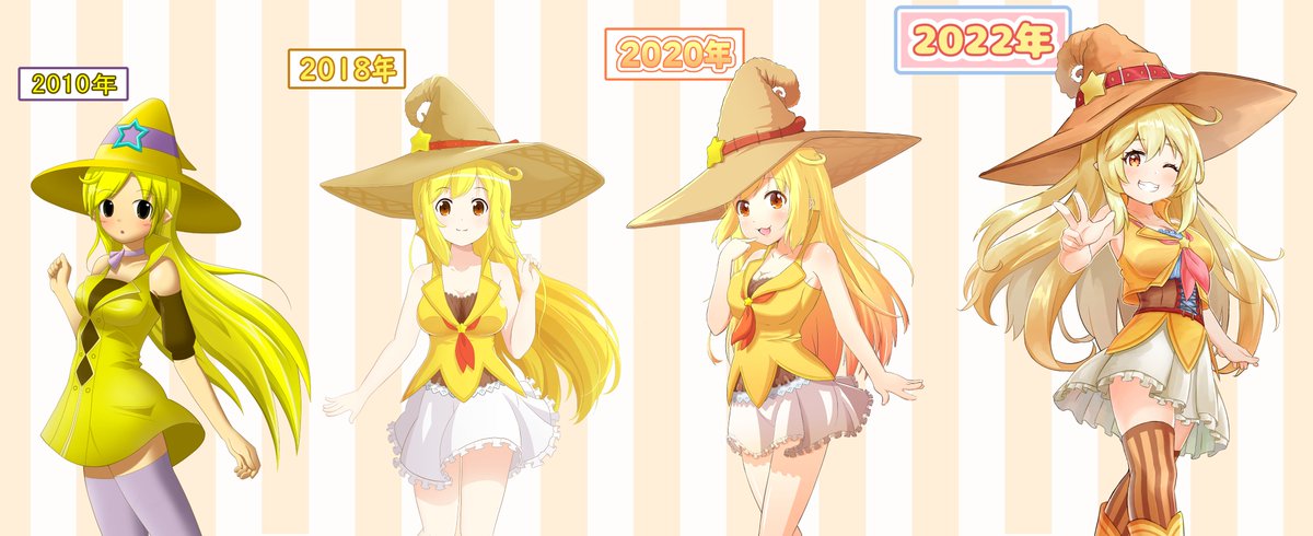 ストライプちゃんの絵の変化、最新版🖊 描き終える度に「すごく良く描けた!これ以上成長できるのだろうか?」って思ってるけど、こうして見るとびっくりするくらい確実に上達している☘ これからも成長し続けられるはず、頑張ろう💪✨ #オリキャラ #成長してると思ったらRT #イラスト練習中