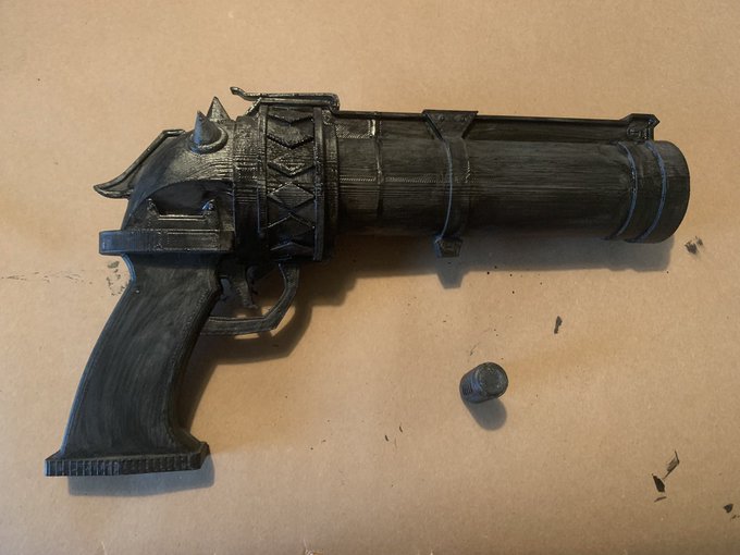 Arcane Jinx Gun painting progress, will be finished next weekend. 😈💙 #arcanejinx #cosplay #jinxcosplay #jinxpistol #3Dprint
