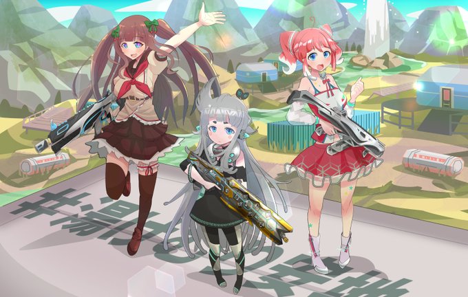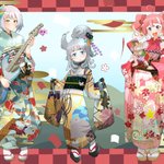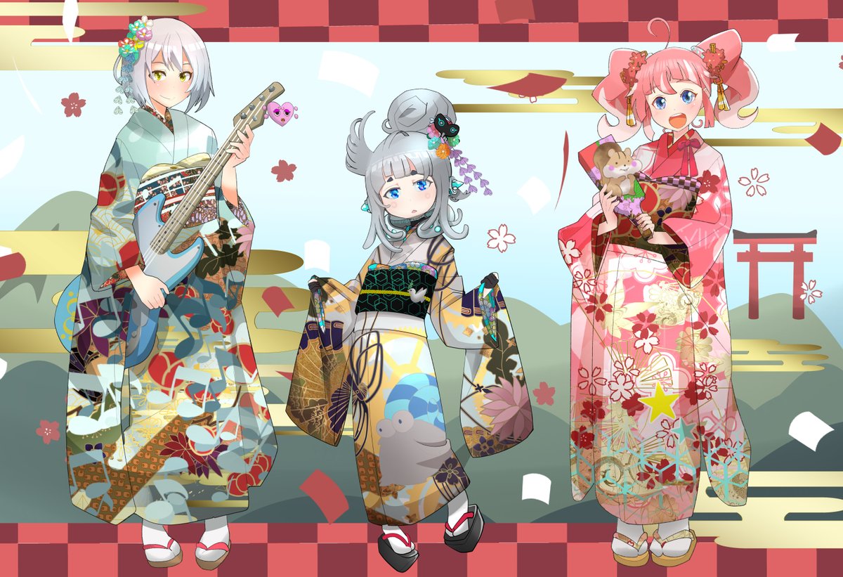 本当は5人全員描きたくて、実際ラフまでは描いていたのだけど、とても松の内には間に合いそうにないので3人だけ わっとちゃんめとちゃん、ごめんね、新衣装は絶対描きたいという気持ちのあけましておめでとう絵 #ゆげいじゅつ #かなでかのんアート #ふわふわあんこ