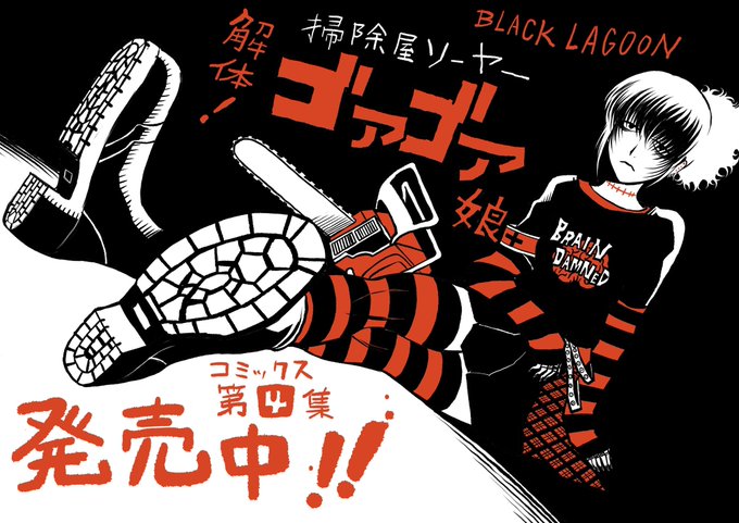 うちも献本届いております。 …公式ツイートあってからの方がいいかと思ったんですけど、2月18日発売予定、「BLACK LAGOON 掃除屋ソーヤー 解体!ゴアゴア娘」第4集。 帯はとよ田みのるさんに頂いております! 愛&歓喜! でもまだちょっとチラ見せで。