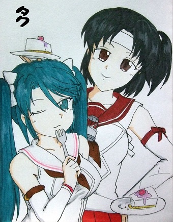 ワンドロ五十鈴&長良に挑戦!ツードロかかりました、五十鈴の進水日ということでケーキをプレゼント長良はお姉ちゃん権限でご相伴、おめでとう五十鈴 #艦これ版深夜の真剣お絵描き60分一本勝負 #艦これ版真剣お絵描き60分一本勝負_20221029