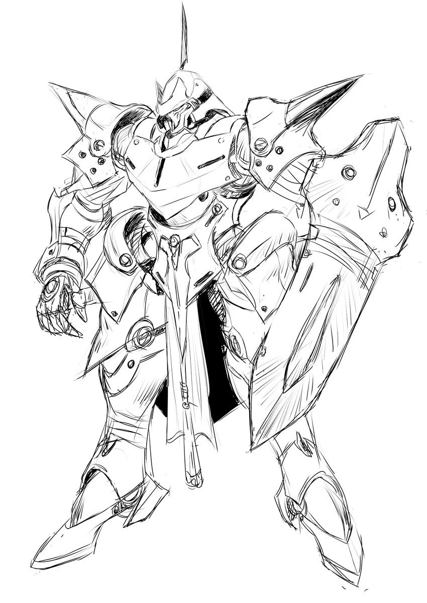 ひさしぶりにロボ落書き 西方南部旧王朝諸国、新ルーハス王国の旗操兵ドレイ・アーン(妄想バージョン) (改)は軽量化したとのことなので重くしてみました。 #操兵