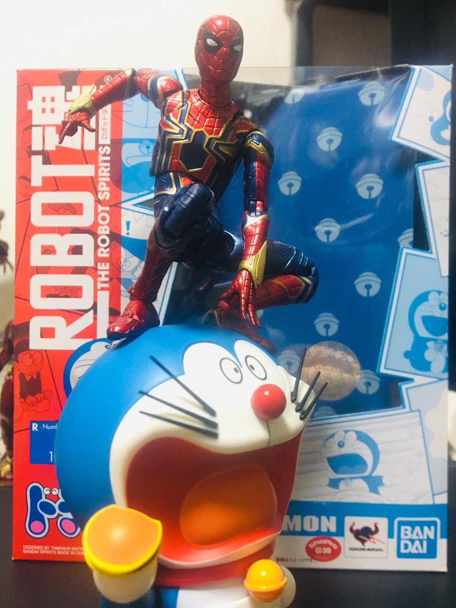 お題『機械』 ロボット魂ドラえもん今更ながら購入。 猫型機械です笑 パーツが豊富! 頭と手が磁石なのでmafexのスパイディも乗っけれますね笑 これは遊びがいがあります! #オモ写 #フィギュア撮影友の会 #フィギュアーツ写真部 #夜のフィギュア撮影会 #ロボット魂 #ドラえもん #スパイダーマン