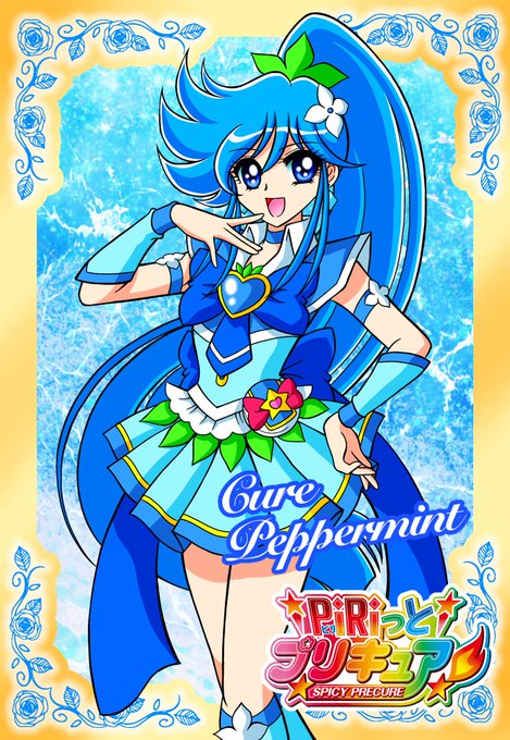 私様のバカプリキュア❗️ PIRIっとプリキュア❗️ 青キュア、キュアペパーミント‼️ 名前は葵涼(あおいりょう) 由来は、ペパーミント商品のパッケージカラーの青+清涼感‼️ バカもタマには直球勝負‼️ #プリキュア #パロディ #イラスト twitter.com/tatsumikyohei/…