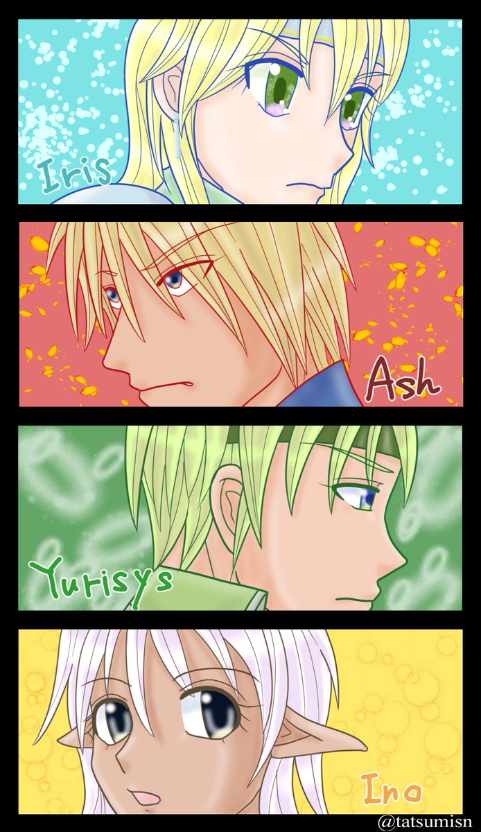 #今月描いた絵を晒そう 1、2、3枚目:『アルテアの魔女』の、インシオン、ソキウス、エレ 4枚目:『アルファズル戦記』のミスティとランディの、本編で故人カプ。 今月は当社比めちゃ描きましたね……。今、もう1枚描いている最中なのですが、今日は時間切れなので来月!!