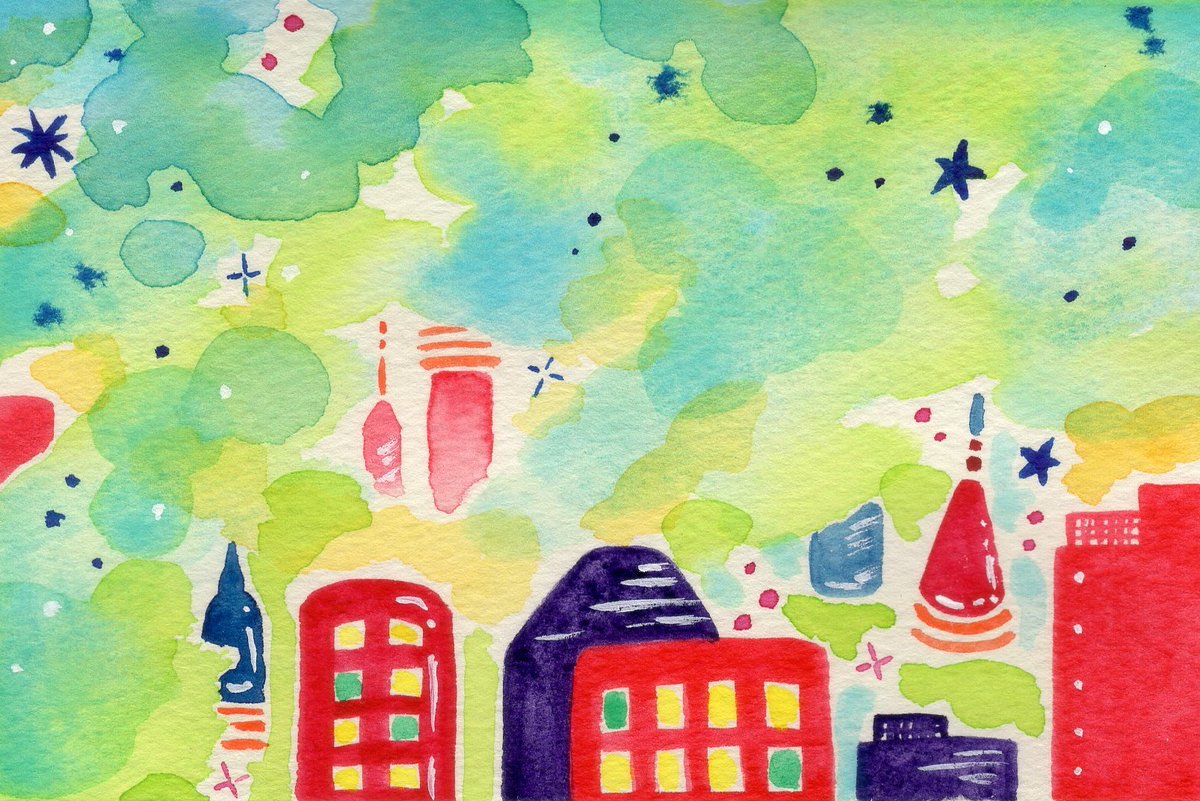 『今宵、願いが降り注ぐ』 カラフルに塗れてお気に入り😊 #アナログイラスト #透明水彩