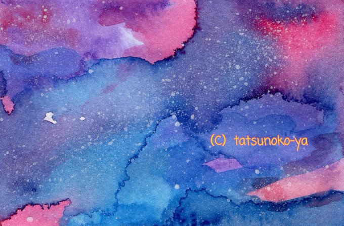 1 4 画仙紙に透明水彩で宇宙🌌✨ 予想できないにじみ具合🎶 #アナログイラスト #透明水彩 23/06/15 07:55