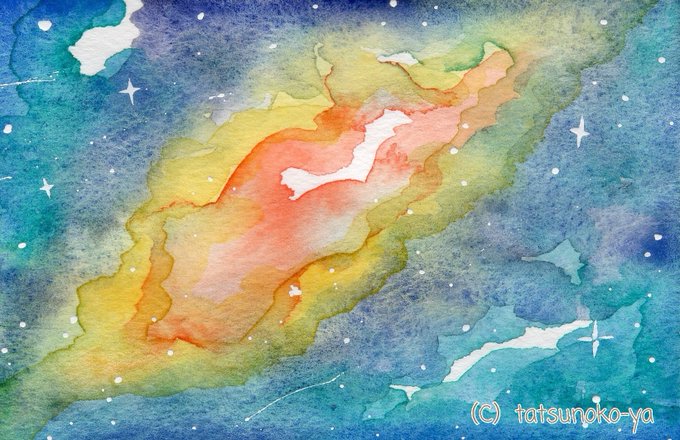4 14 我らは宇宙を漂う旅人 星と星を渡り歩く 魂の交流を続けてゆく #透明水彩 #水彩画 #アナログイラスト #宇宙 22/11/26 07:42