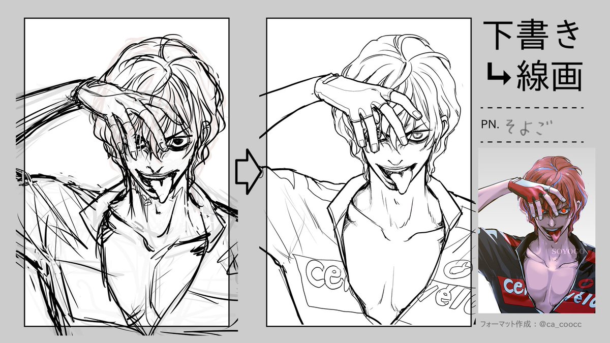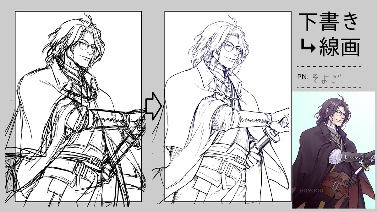 11 39 #下書き線画比較 過去絵で乗っかってみた 良くある話だけど下書きの方が表情がいい…っていつもおもう。線画で死んだあれこれを色塗りというか影つけでごまかしごまかしする 21/07/13 22:34