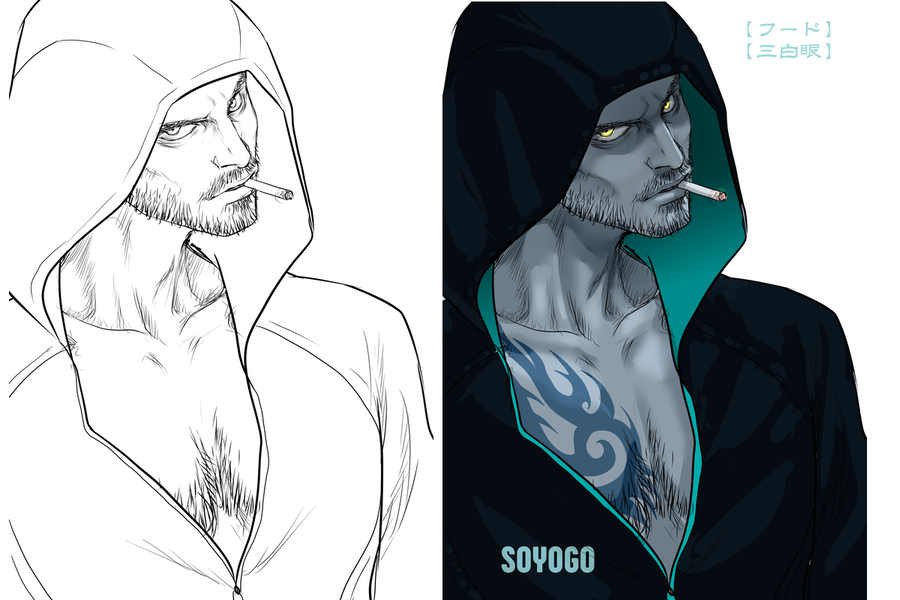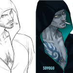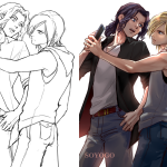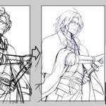 #下書き線画比較 過去絵で乗っかってみた 良くある話だけど下書きの方が表情がいい…っていつもおもう。線画で死んだあれこれを色塗りというか影つけでごまかしごまかしする