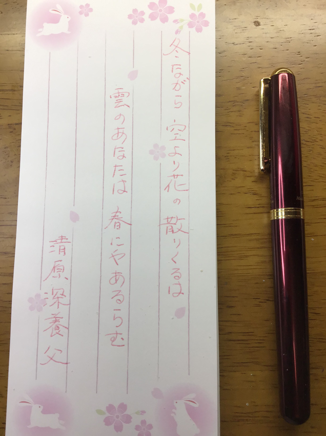 数日来楠栞桜さんのファンアートがTLを飾って華やいだ気分になりました 本当にありがたいこと オート社のファーバーカステル社のインク「サクラ」で清原深養父の歌を書いてみました 楠栞桜さんがおだやかな日々を送っていることを祈りつつ応援して静かに復帰を待ちます #楠栞桜 #さくらのしおり