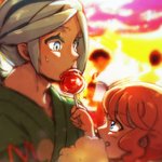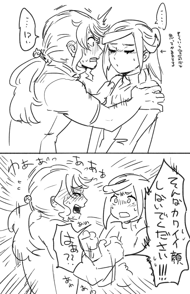 ※自機主/主グル/成長IF 久々に落書き グルーシャは小さめ(だと思われる)から身長抜かれやすいんだなあ☺️とニコニコする自分得絵 ちなみに身長をざっくり割り出したやつはこれ↓ twitter.com/tatubi_officia…