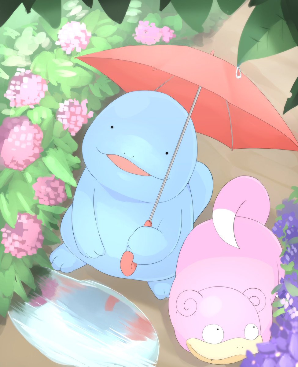 雨上がりのヤドンとヌオー紫陽花を添えて #pokemon #slowpoke #Quagsire