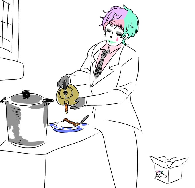 4 21 #ジョー設展 冷えたほうじ茶が入ってそうな金色の懐かしい感じのやかんでカレーを注ぐ男 22/04/28 03:31