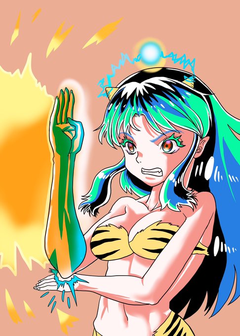 ラムちゃんワイドショット。スイカの神様に使ってました、スペシウム光線でもエメリウム光線でもなく。乗算とか色々試行錯誤しながら描いてみました。使いこなせるかな…プロクリエイト。#うる星やつら #ラムちゃん #ウルトラセブン #絵描きさんと繋がりたい #絵柄が好みって人にフォローされたい
