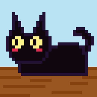 リクエストドット絵! にゃーさんからのリクエスト「ネコ」32*32 今回描いたのは黒猫 体の色を単一色シンプルに描きたかったので描いた! みゃ〜 #ドット絵 twitter.com/virtual_neco…