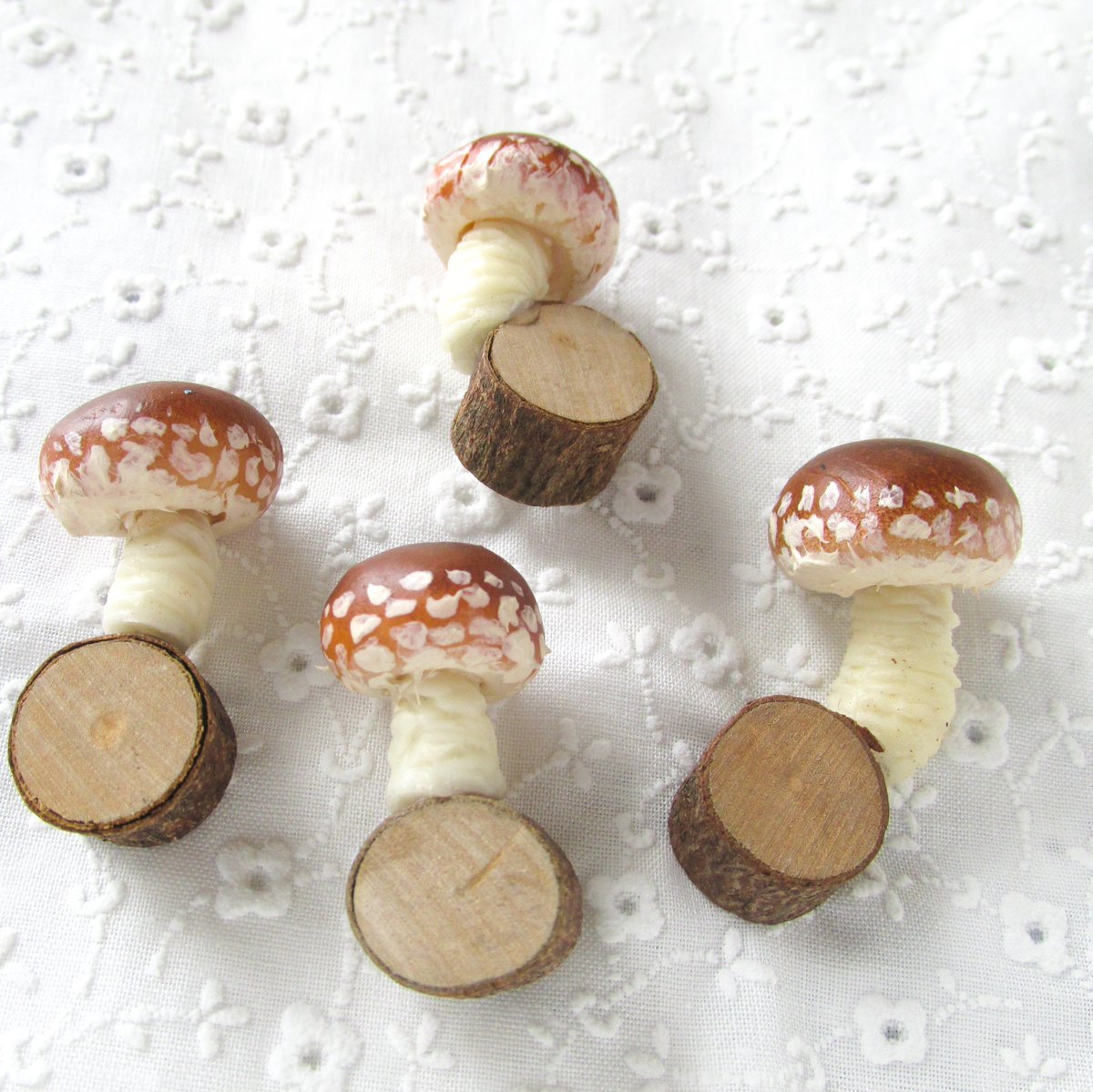 こういうタグにも参加してみます! お手製のキノコちゃんたちを見てください! 自分でもデスクに飾ってるけど癒されますわよ^^ #画像を4枚晒したらrtがきてフォロワーがぶわーって増えると聞いて