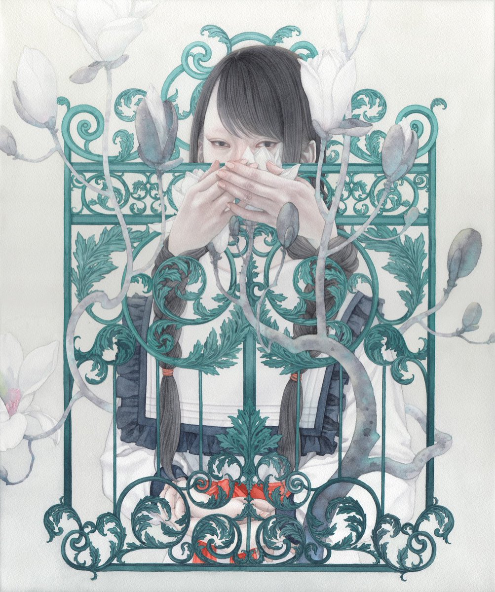 Ongoing until the 25th. 'Onna No Ko', a Japanese Group Exhibition. ロンドンにて開催中のグループ展『女の子 Onna No Ko』より。 「イノセント・ガーデン2」 F8号 tokyoparkgallery.com