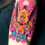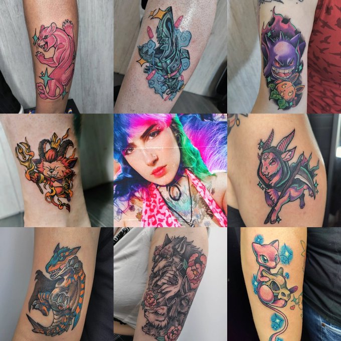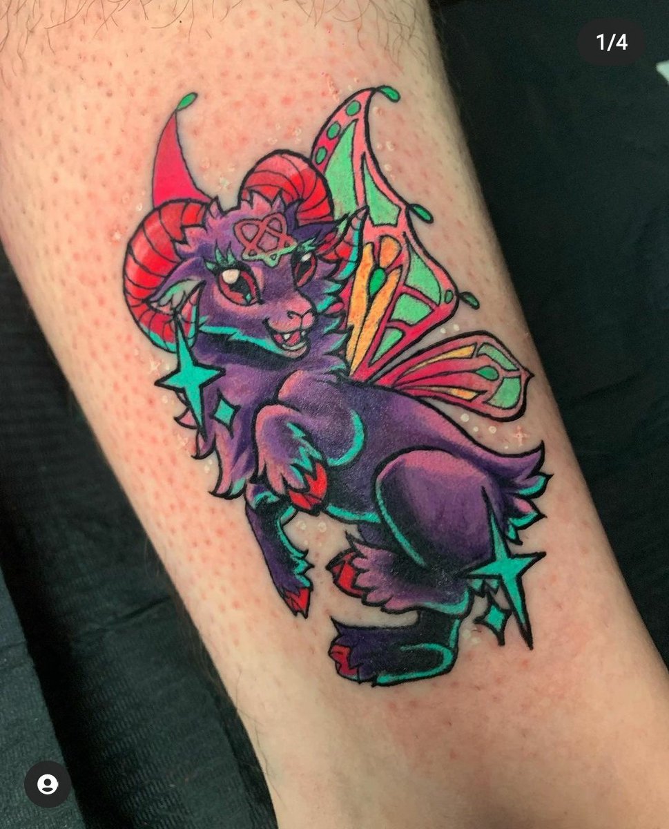 It's #PortfolioDay so hi! I'm tau a tattooer and ilustrator from Spain, people most know me for my lil goats and liking of pastel-neon palette ✨❤️ I also enjoy making merch a lot!