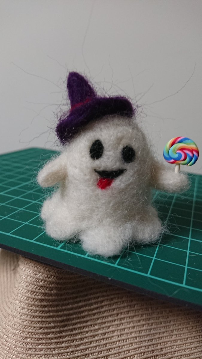 1 18 フェルトで作ったオバケに ぺろぺろキャンディー持たせてた☺ #smile795 #ハロウィン #羊毛フェルト 20/10/29 10:49