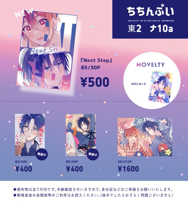 27 115 3/19トプステのおしながきです! 全てりくいお本です~!再録以外の既刊は残部少なめです。当日はよろしくお願いします😊 23/03/17 23:55