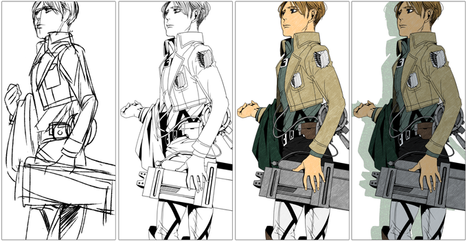 この間のモブリットはこんなです。色塗り嫌いなので\(^o^)/ #皆さん線画と塗った後を見せてください