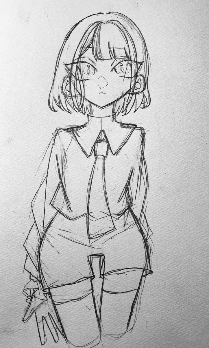 #このタグを見た人はラフ画とその完成絵を見せる 思ったより上手く描けた!!ちょっと可愛いのでは???