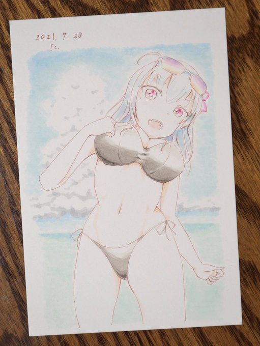 7 64 なぜか滅多に描かない水着絵🦀 何か描き忘れたような気がしますが、雰囲気だけでも… #駅メモファンアート 21/07/23 21:57