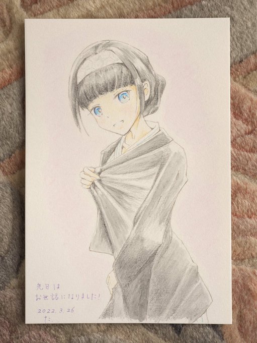 4 24 先日訪問した記念に一枚描きました。 初めてゆっくり過ごした温泉地として、ずっと心に残る思い出になりそうです ( ⁎ᵕᴗᵕ⁎ ) #温泉むすめ 21/08/09 20:29
