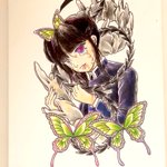 ストップひばりくん以来、少年ジャンプコミックスを買いました。 tattooflash風に描き続けながら物語の探究を楽しんでいきたいと思います #鬼滅の刃 #栗花落カナヲ #コピック #色鉛筆