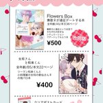 明日のお品書きです🌸 朱歌さん、あまなつさんとの兼歌︎︎ ♀合同誌は私のスペースでの取り扱いとなります🙇♀️ 新刊の他にクリアポストカードも持って行くのでよろしくお願いします🐺🌸(全て兼歌︎︎ ♀です)