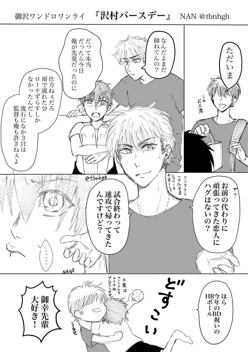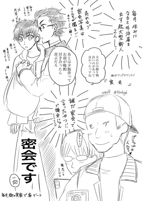 #御沢ワンドロワンライ 『ひさびさの』プロ御沢+倉 契約更新の時のスーツ姿 沢「そのグラサン、ファッションじゃなかったんすね」 倉「去年油断して目ぇやられた」 御「……照明かなんかなの?俺」