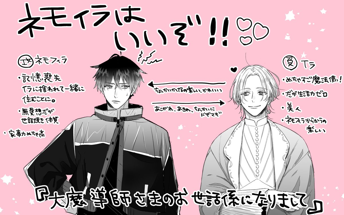 🌙大魔導師さまのお世話係になりまして🌙 7話後編更新です🥳!そして最終回です…! イラとネモフィラを最後までよろしくお願いします🧙♀️✨ #創作BL #大魔導師さまのお世話係になりまして