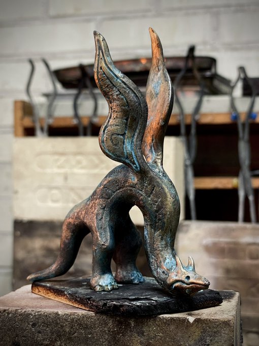 翼の古龍像/Wing Dino Statue [青銅 金メッキ/ bronze, gold coating 2023]