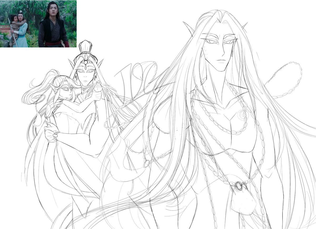 Maybe it's bc I'm super tired from work today or I like this sketch too much but this is as far as I'm taking this pic rn #MDZS #MoDaoZuShi #WangXian #mermay