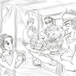 #ゴールデンカムイ版深夜の真剣お絵描き60分一本勝負 【お題】海の日 杉と尾は海の家の兄ちゃん。 初参加させて頂きます!! が、10分over。。すみません。 1時間短いっ★ガサ描きで精一杯でした。精進します。