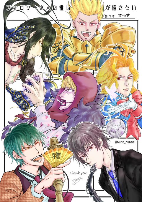#フォロワーさんの推しが描きたい お待たせしましたー!! お時間下さった皆さまありがとうございます🙏💖 模写から脱却出来てないキャラさんもいて恐縮なのですが、楽しく描かせて頂きました❣️めっちゃ勉強になった!!!😆✨ この面子揃ったらこうなるかな?絵 ツリーにてソロverでキャラ名など紹介