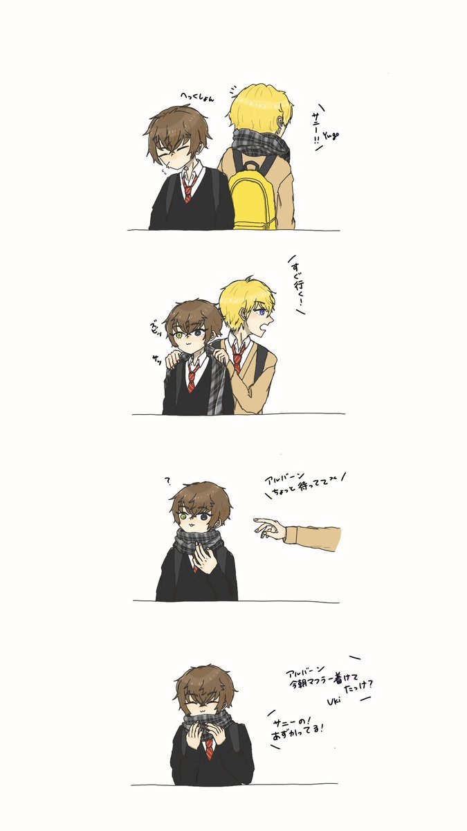 学パロ/寒くなってきたので…🧣 英語翻訳間違ってたらすみません🙏 #sonnyban #AlbanKnoxArt #Briskart