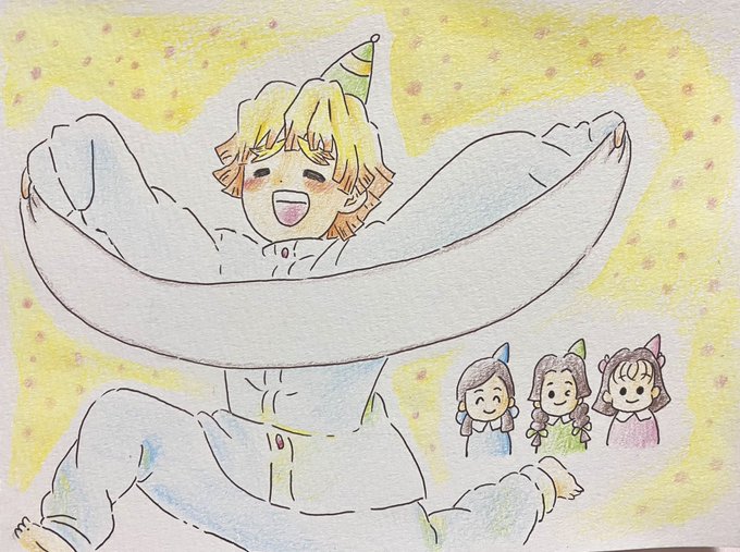 #今月描いた絵を晒そう そういえば最近イラスト載せてなかった、、、😇しっかり描いてます✨ コスプレしてる善逸と急な朱紗丸ですっ!🙌❤️笑笑笑 #我妻善逸イラスト #鬼滅の刃好きさんと繋がりたい #イラスト好きさんと繋がりたい