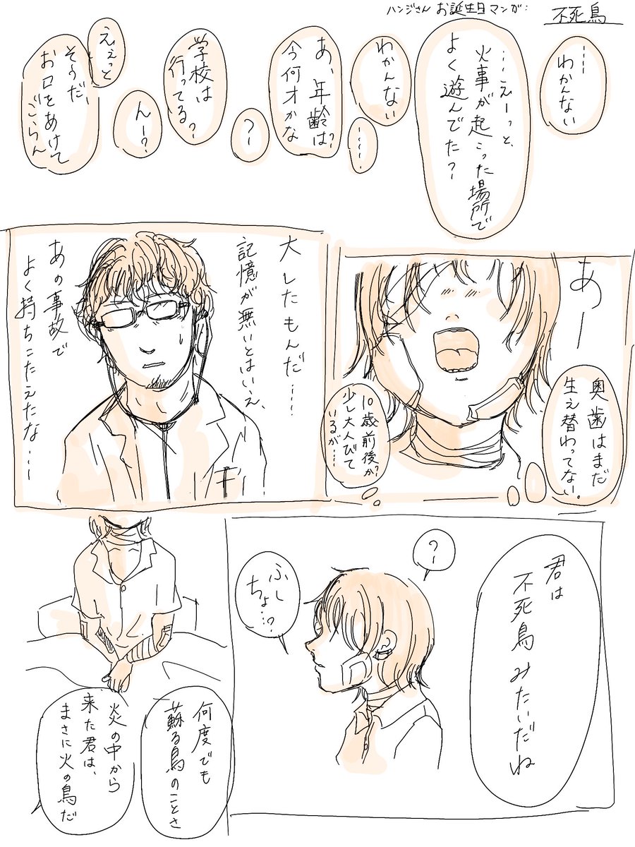22 101 #ハンジ・ゾエ生誕祭2022 #ハンジ生誕祭2022 『不死鳥』 ※アニメ未放送の内容を含みます ※雑、ゆる、字汚 ※オリキャラ、過去未来捏造たくさん (1/2) 22/09/05 00:03