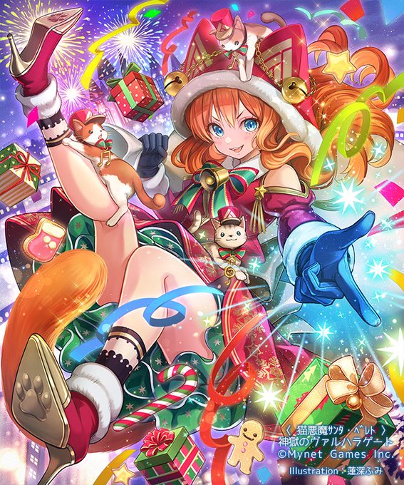 【お仕事】株式会社マイネットゲームス様より配信中の「神獄のヴァルハラゲート」にて担当した『猫悪魔サンタ・ベレト』のイラストです(既存キャラクターをクリスマス衣装で描きました) #神獄のヴァルハラゲート