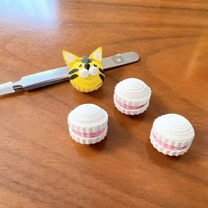 紙で作るマカロンシリーズ パグちゃんです💕 マカロンシリーズは、minneショップでご覧いただけます。かなり下の方ですが😅カプセルケースに入れてキーホルダーにできます。 minne.com/@teardrop870 #ペーパークラフト #パグ
