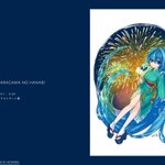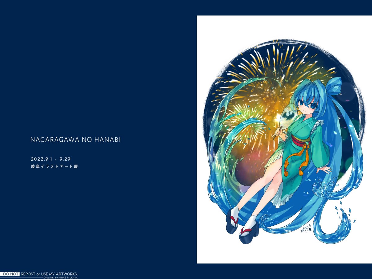 先日聞かれたので、#岐阜イラストアート展 展示作品のこぼれ話💬 今回は隠し要素はありませんが、手に持っている水うちわの鵜は一応鮎を咥えています。(透かしたら薄くなっちゃった) あと花火は十数年前に行った長良川の花火大会参考です。